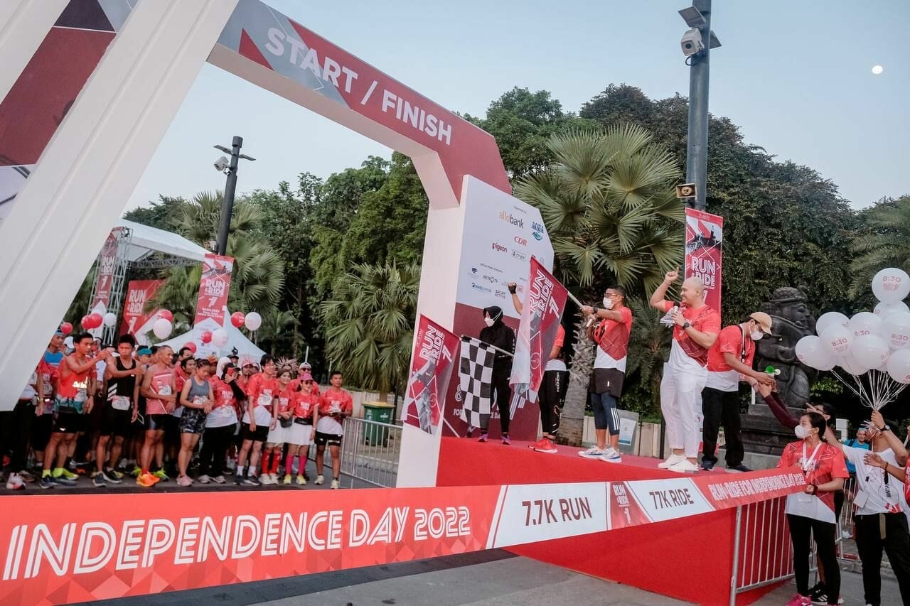 “Run and Ride for Independence Day 2022” diikuti ratusan peserta yang terdiri dari dua kategori yakni lari dengan jarak tempuh 7,7 kilometer dan sepeda 77 kilometer.